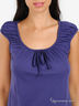 Детали: округлый вырез горловины присборен на трикотажную ленту, короткий рукав-реглан, округлый крой низа изделия декорирован оригинальным набивным рисунком с блеском