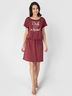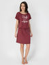 Платье домашнее прямого силуэта со спущенным рукавом из принтованного полотна с текстовым принтом на полочке. Модель по талии отрезная с легкой сборкой на резинку и дополнена узким поясом.