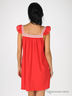 На груди выполнена кокетка с вставками из шитья. Вырез горловины "каре". Короткие рукава-крылышки. Глубокие проймы-вырезы. Декоративная сборка ткани на линии груди.