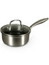 Соусник с крышкой Pomi d'Oro. Коллекция Senza graffi. Диаметр 16см. Объем 1,3л. Инновационнное армированное антипригарное покрытие внутри. При приготовлении пищи можно пользоваться металлическими лопатками,ложками и даже вилками, не опасаясь повреждения поверхности. Трехслойный соусник-ковш (дно и боковые стенки), пищевая нержавеющая сталь марки 18/10 (SS304). Толщина стенок и дна 2,5мм. Надежное крепление ручек, стеклянная крышка с кольцом для выпуска пара. Подходит для всех типов плит. В такой посуде можно готовить здоровую пищу с использованием минимального количества жира. В ней можно тушить, жарить, варить – любые блюда от незатейливых соусов до сочных бифштексов с хрустящей корочкой. Что нужно настоящей хозяйке? Посуда Pomid'Oro, с которой приготовленные блюда становятся семейными шедеврами Высокой кухни. Ведь как говорят итальянские повара - "Sono felice in cucina ed è la cosa più importante!" - "Я счастлив на кухне, и это - самое главное".