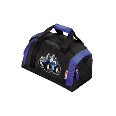 Спортивная сумка с двойной молнией имеет ручки с застежкой-липучкой, сшита из влагостойкого материала.