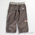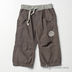Модель прямого кроя. Имитация застежки на молнию. В трикотажный пояс вшита резинка, вставлен шнурок, завязывающийся снаружи. Имитация карманов. Анатомический крой колен. В низ брючин вшита резинка. Декоративная аппликация на левой брючине спереди, две нашивки на правой брючине сзади.