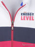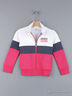 Кофта с длинными рукавами и воротником стойкой. Спереди модель дополнена небольшой надписью и застежкой на молнию. Изделие выполнено в яркой, контрастной расцветке. Отличный и практичный вариант для Вашей малышки.