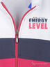 Кофта с длинными рукавами и воротником стойкой. Спереди модель дополнена небольшой надписью и застежкой на молнию. Изделие выполнено в яркой, контрастной расцветке. Отличный и практичный вариант для Вашей малышки.