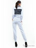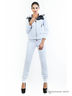 Трикотажный белый костюм, декорированный гипюром по полочке и по центру спинки кофты. Кофта идет на замке с 2-мя карманами. Брюки заужены к низу с накладными карманами на замках. Отличный вариант для создания стильного образа.