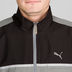 Сверху брюки затягиваются шнурком, снизу имеют регулируемую резинку. Сетчатая подкладка чёрного цвета. Курка костюма на молнии, с карманами на молнии. Рукава и низ куртки на резинке. Подкладка куртки также сетчатая, чёрная. Воротник сзади украшен логотипом Puma серого цвета.
