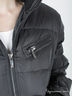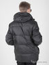 Пуховик короткий , центральная застёжка - молния, воротник – стойка, верхняя часть из основной ткани, внутренняя отделана трикотажем , капюшон с козырьком отстегивается, внутренняя часть капюшона из полушерстяной серой ткани, карманы прорезные на молнии, нагрудный прорезной карман на молнии ,в рукавах трикотажные манжеты, часть подкладки куртки так же выполнена из полушерстяной ткани серого цвета, утеплитель пух
