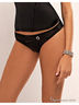 Удобные стринги популярной модели бразилиан из гладкой микрофибры с деталями из тюля с блестками и украшением со стразами спереди.