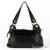 Модная небольшая сумка из натуральной кожи черного цвета. Стенки изделия средней плотности. Основное отделение застегивается на металлическую молнию. Внутри одно большое отделение, один кармашек на молнии и два небольших открытых отдела. Длинный плотные тонкие ручки из кожи. Подклад из текстиля. Ножек нет. Цвет фурнитуры - серебро.
