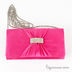 Вечерняя сумка из ярко-розового атласа - оригинальный и стильный аксессуар. Сумочка имеет твердые стенки. Застегивается на клапан с магнитной застежкой. Внутри одно большое отделение и кармашек для мелочи. Съемный наплечный ремень-цепочка. Декорирована крупными стразами.