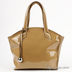 Оригинальная женская сумка из натуральной лаковой кожи гладкой фактуры. Стенки изделия мягкие. Декорирована брелоком. Основное отделение застегивается на молнию. Внутри два открытых кармашка и один прорезной карман на молнии. Без подкладки. Короткие ручки. Цвет фурнитуры -серебро. Мягкое формованное дно без ножек.