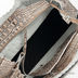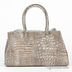 Элегантная женская сумка из натуральной рельефной кожи крокодила. Стенки изделия средней плотности. Боковые стороны можно закрепить на клепки. Основное отделение застегивается на металлическую молнию. Внутри одно просторное отделение без карманов, а так же небольшой кошелек-клатч на кожаном ремешке. Подклад - замша. Стильные плотные ручки из ребристой кожи. Ножек нет, дно плотное, цвет фурнитуры - серебро.