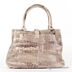 Стильная женская сумочка из натуральной кожи с выделкой под кожу крокодила. Стенки изделия плотные. Два скрытых кармана на внешних сторонах сумки. Основное отделение застегивается на замок клапан и молнию. Внутри одно просторное отделение разделенное мягкой перегородкой, один кармашек на молнии и два небольших отделения для мобильного и портмоне. Подкладка из текстиля серого цвета. Небольшие плотные удобные ручки. Дно формованное, 4 металлические ножки. Цвет фурнитуры - серебро