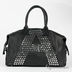 Модная женская сумка из натуральной фактурной кожи. Стенки изделия мягкие. Передняя часть декорирована металлическими клепками. На задней стороне один карман на молнии. Основное отделение застегивается на молнии. Внутри одно просторное отделение, один карман на молнии и два небольших отдела. Подклад - текстиль. Небольшие удобные ручки из кожи. Дно формованное, 5 металлических ножек. Цвет фурнитуры - серебро.