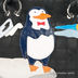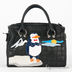 Необычная женская сумка из натуральной фактурной кожи. Стенки изделия мягкие. На внешней стороне аппликация в виде оригинального изображения пингвина. На задней стороне один карман на молнии. Основное отделение застегивается на молнию. Внутри одно просторное отделение, один кармашек на молнии и два открытых кармашка. Подклад - текстиль. Плотные, но мягкие ручки и съемный тонкий ремешок. Цвет фурнитуры - серебро, ножек нет. Дно формованное.