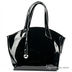Оригинальная женская сумка из натуральной лаковой кожи гладкой фактуры. Стенки изделия мягкие. Декорирована брелоком. Основное отделение застегивается на молнию. Внутри два открытых кармашка и один прорезной карман на молнии. Без подкладки. Короткие ручки. Цвет фурнитуры -серебро. Мягкое формованное дно без ножек.