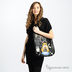 Необычная женская мешковатая сумка из натуральной фактурной кожи. Стенки изделия мягкие. На внешней стороне аппликация из натуральной замши в виде оригинального изображения собаки и мышки. На задней стороне один карман на молнии. Основное отделение застегивается на молнию. Внутри одно просторное отделение, один кармашек на молнии и два открытых кармашка. Подклад - текстиль. Ручка-трансформер выполнена из тонкой кожи на молнии, может превращаться в две ручки. Ножек нет.