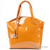 Оригинальная женская сумка из натуральной лаковой кожи гладкой фактуры. Стенки изделия мягкие. Декорирована брелоком. Основное отделение застегивается на молнию. Внутри два открытых кармашка и один прорезной карман на молнии. Без подкладки. Короткие ручки. Цвет фурнитуры -серебро. Мягкое формованное дно без ножек.