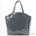 Оригинальная женская сумка из натуральной лаковой кожи гладкой фактуры. Стенки изделия мягкие. Декорирована брелоком. Основное отделение застегивается на молнию. Внутри два открытых кармашка и один прорезной карман на молнии. Без подкладки. Короткие ручки. Цвет фурнитуры -серебро. Мягкое формованное дно без ножек.