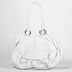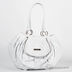 Кожаная сумка с мягкими стенками. Застегивается на магнитную кнопку. Один большой карман на молнии на передней стенке. Ручкодержатель - металлические кольца. Внутри одно большое отделение и три кармана: один на молнии, два открытых (узкий для мобильного телефона и широкий для мелких принадлежностей). По краям размер сумки регулируется кнопками. Дно выполнено в виде полукруга.