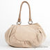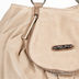 Замшевая сумка с мягкими стенками. Застегивается на магнитную кнопку. Один большой карман на молнии на передней стенке. Ручкодержатель - металлические кольца. Внутри одно большое отделение и три кармана: один на молнии, два открытых (узкий для мобильного телефона и широкий для мелких принадлежностей). По краям размер сумки регулируется кнопками. Дно выполнено в виде полукруга.
