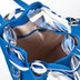 Женская сумка из натуральной кожи. У сумки мягкие стенки. Завязывается с помощью шелкового платка, пропущенного через крупный люрекс. Наплечный ремень не отстегивается. Внутри одно большое отделение и три кармана: один на молнии, два открытых (узкий для мобильного телефона и широкий для мелких принадлежностей). Твердое прямоугольное дно с металлическими пуклями.