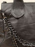 Стильная объемная женская сумка из натуральной кожи серого цвета. Прочные круглые ручки, дополнительно прилагается длинная регулируемая отстегивающеюся ручка. Сумка украшена цепями. Внутри сумки: два основных отдела с удобными кармашками и один средний отдел на молнии.