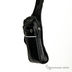 Небольшая оригинальная сумка через плечо, состоящая из одного основного отделения на молнии, который можно широко раскрыть. Внутри имеется карман на молнии и кармашек для телефона. С лицевой стороны есть небольшой тонкий незакрывающийся карман, декорированный небольшими и неброскими кольцами-дырками. Подкладка - черный нейлон, фурнитура - матовое серебро. Регулируемый плечевой ремень.
