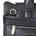 Деловая сумка с одним отделением на молнии. Внутри карманы разного типа. С лицевой стороны два кармана на молниях, в одном из них отделения для авторучек, мобильного телефона, визитных карточек. С задней стороны карман на молнии. Подкладка - черный нейлон, фурнитура - серебро. Две короткие, жесткие ручки. Длинный, регулируемый плечевой ремень - стропа с наплечником из натуральной кожи.