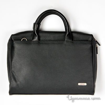 Сумка деловая из натуральной кожи. Одно отделение на молнии. Внутри отделение на молнии, разделяющее ее на две части. Также имеются специальные отделения для документов. С лицевой и задней стороны - карман на молнии. Подкладка - черный нейлон, фурнитура - серебро. Короткие, жесткие ручки с возможностью соединения. Длинный плечевой ремень с наплечником из натуральной кожи.