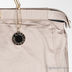 Сумка тканевая, с кожаной отделкой и золотой фурнитурой.