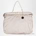 Сумка тканевая, с кожаной отделкой и золотой фурнитурой.