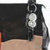 Изящная женская сумка из искусственной кожи и замши. Стенки изделия мягкие. На задней части карман на молнии. Главное отделение застегивается на молнии. Внутри два небольших открытых кармашка и отделение на молнии. Стильные вставки со стразами у основания ручки. Ручка средней длины из тонкой кожи. Сумку можно носить на плече. Цвет фурнитуры - золото. 4 металлические ножки.
