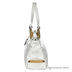 Сумка Eleganzza из натуральной кожи белого цвета. Внутри - два отделения, разделенные средником на молнии. В одном имеется карман на молнии, в другом - карман для мобильного телефона и карман для мелочей. На задней стенке снаружи - удобный кармашек на молнии. Цвет фурнитуры - белый. Высота ручки - 21 см.