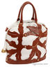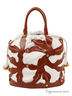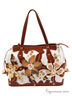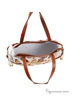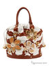 Красивая, нежная сумка выполненная из мягкой napa кожи, с аппликацией из листьев собранных золотыми гвоздиками и украшенный большими разноцветными цветами и бесчисленными блестящими микроцветами с искусственными бриллиантами. Внутри: один отдел, в котором есть три кармана, один из них на молнии.
