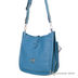 Универсальная женская сумка голубого цвета из натуральной кожи с карманом на внутренней стороне. Закрывается с помощью кожаного ремня. Без подкладки, внутри один карман.
