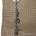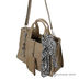 Женская сумка из натуральной кожи, которая имитирует фактуру рептилии, на текстильном подкладе. Внутри посередине одно отделение на молнии и два на заклепках. Так же имеется съемный кошелек для монет.