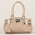 Элегантная женская сумка из искусственной кожи. Стенки изделия мягкие. Основное отделение застегивается на молнию. Внутри два открытых кармашка и прорезной на молнии. Подкладка - текстиль. Ручки средней длины позволяют носить сумку на плече. Цвет фурнитуры - серебристый. Дно плотное формованное, четыре ножки. Декорирована оригинальным металлическими деталями.