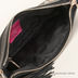 Изящная женская сумка из искусственной кожи. Стенки изделия мягкие. Два внешних кармана на молнии. Основное отделение застегивается на металлическую молнию. Внутри один прорезной карман на молнии. Подкладка - текстиль. Плечевой ремень регулируется по длине. Цвет фурнитуры - золотистый. Декорирована вставкой с тканевыми цветами.