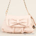 Изящная женская сумка из искусственной кожи. Стенки изделия мягкие. Основное отделение застегиваются на молнию и клапан с магнитной кнопкой. Внутри один открытый карман и один прорезной на молнии. Подкладка - текстиль. В комплекте съемная цепочка для ношения на плече и съемный плечевой ремень. Цвет фурнитуры - золотистый. Передняя часть декорирована оригинальным бантом.