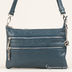 Изящная женская сумка из искусственной кожи. Стенки изделия мягкие. Передняя часть сумки декорирована двумя прорезными карманами на молнии. Основное отделение застегивается на металлическую молнию. Внутри два открытых кармашка и один прорезной карман на молнии. Подкладка - текстиль. Съемный плечевой ремень регулируется по длине. Цвет фурнитуры - серебристый.