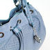 Перфорированная сумка светло-голубого цвета от Capoverso. Тренд сезона весна-лето 2011. Дополнительный регулирующийся ремень на карабинах. Внутренние карманы. Фиксация на шнуровке. Надёжная молния. Эффектный брелок с логотипом. Идеально проложена каждая строчка.