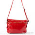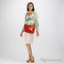 Стильная яркая сумочка из натуральной кожи с тиснением. Сумка имеет мягкие стенки. Верхняя часть сумок выполнена с перфорацией и вставкой из бежевой кожи. Основное отделение застегивается на молнию. Внутри одно большое отделение, два небольших кармана на молнии и два открытых кармашка для кошелька и мобильного, а так же специальное кольцо под ключи. Длинный мягкий регулируемый ремешок. Ножек нет. Цвет фурнитуры - серебро.