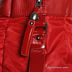 Ярко красная сумка из нейлона горизонтального формата с двумя ручками, внешним карманом.