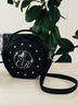 Оригинальная компактная сумка круглой формы с удобной ручкой, в комплекте длинный регулируемый ремень. Внутри отделение под ключи и телефон, снаружи прорезной карман на молнии на спинке. Размер: 24*28*12 см.