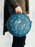 Оригинальная компактная сумка круглой формы с удобной ручкой, в комплекте длинный регулируемый ремень. Внутри отделение под ключи и телефон, снаружи прорезной карман на молнии на спинке. Размер: 24*28*12 см.