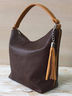 Небольшая сумка-мешок с 2 видами ремней. Внутри отделение под ключи и телефон, а также внутри и снаружи прорезной карман на молнии. Размер: 24*28*12 см.