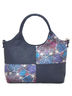 Легкая и компактная сумка с двумя круглыми ручками, лицевая сторона выполнена в сочетании 2 тканей и декорирована строчкой. В комплекте длинный ремень. Размер: 30*23*11 см.
