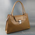 Строгая и стильная женская сумка из искусственной кожи. Одно основное отделение закрывается на клапан с замком. Без подкладки, цвет фурнитуры - серебряный. Ручки средней длины позволяют носить сумку на плече. Дно формованное.