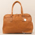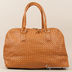 Вместительная женская сумка из плетеной гладкой кожи. Стенки изделия мягкие. Передняя часть сумки декорирована брелоком. Основное отделение застегивается на молнию. Внутри два открытых кармашка и один прорезной карман на молнии. Подкладка текстиль. Ручки средней длины позволяют носить сумку на плече. Цвет фурнитуры - золото, ножки отсутствуют. Дно жесткое, формованное.